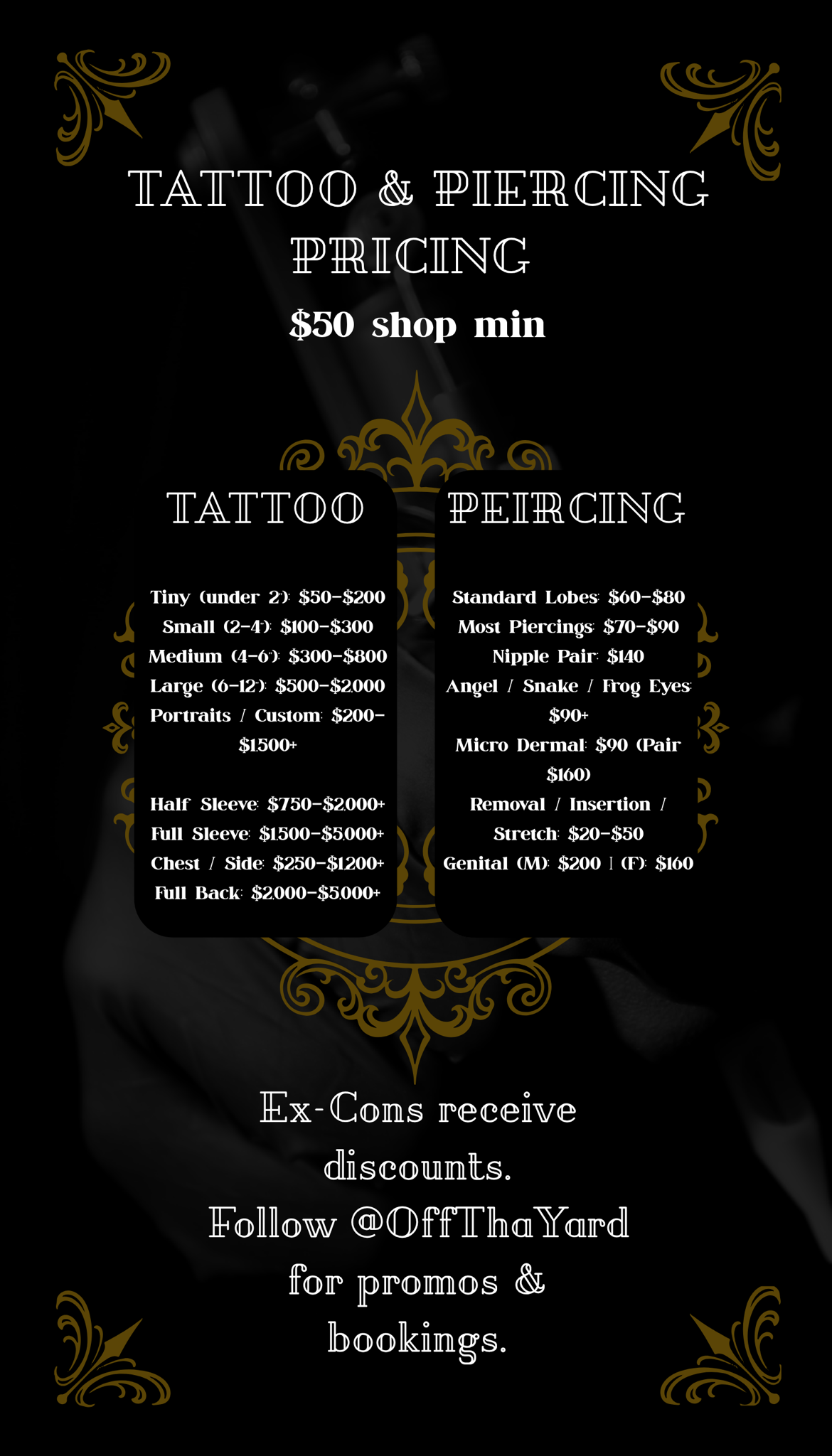 Mon: 9AM - 9PMCopyright © 2026 OffThaYard Tattooz All Rights Reserved. Sitemap. Accessibility Statement